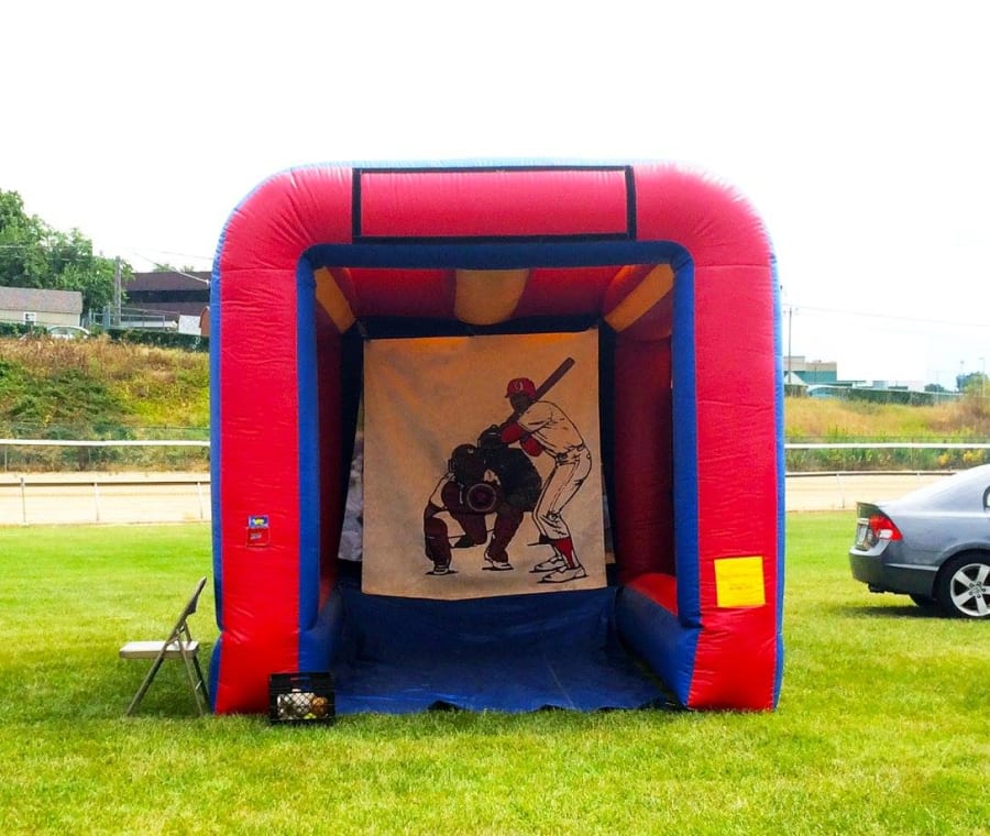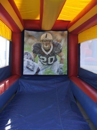 Charm City Party Rentals Offers a choice of Speed Pitch / Pig Skin Pass, through an interchangeable back panel allows for either football or baseball.