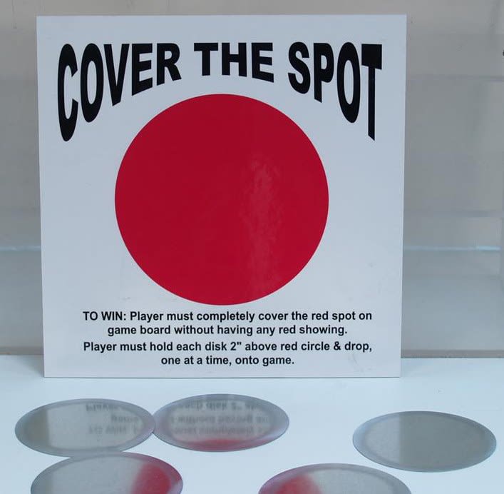 Cover The Spot is another classic carnival game where the player drops the 5 discs from above & tries to completely cover the big red spot in-order to win!