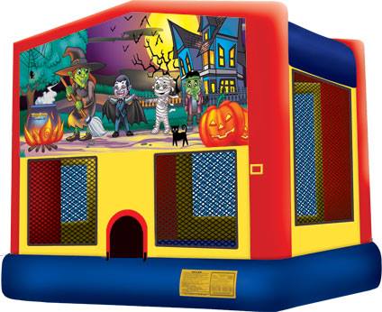 Our Halloween themed unit features ALL your favorite brightly colored Halloween images: Vampires, Witches, Monsters, Mummies, a witch’s cauldron, Jack-0-Lantern, spooky house, black cat; and of course Bats & Spiders! We will even toss in a few inflatable balls to add another dynamic to the level of play.