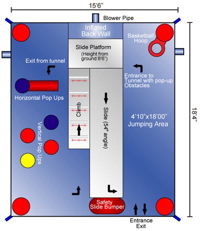 A jump area, basketball hoop, slide, obstacles, & tunnel are the central attractions that are sure to Keep them moving and sliding for hours on end.