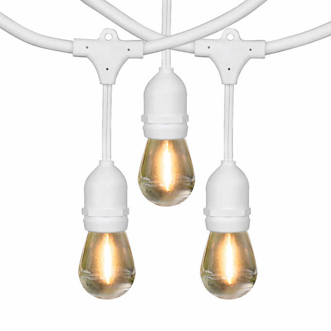 Each 48' strand includes (24) energy saving 1-watt 2200K LED dangling bulb lines spaced about 2' apart. Connect up to 45 sets for a total of 2,160' per power source